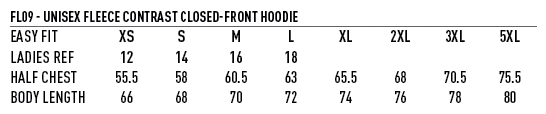 Fabric: Fleece, 320gsm – 35% Cotton, 65% Polyester.